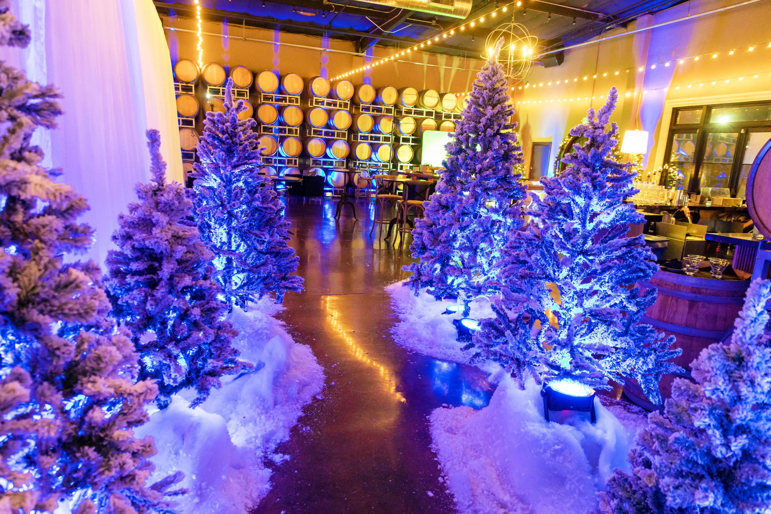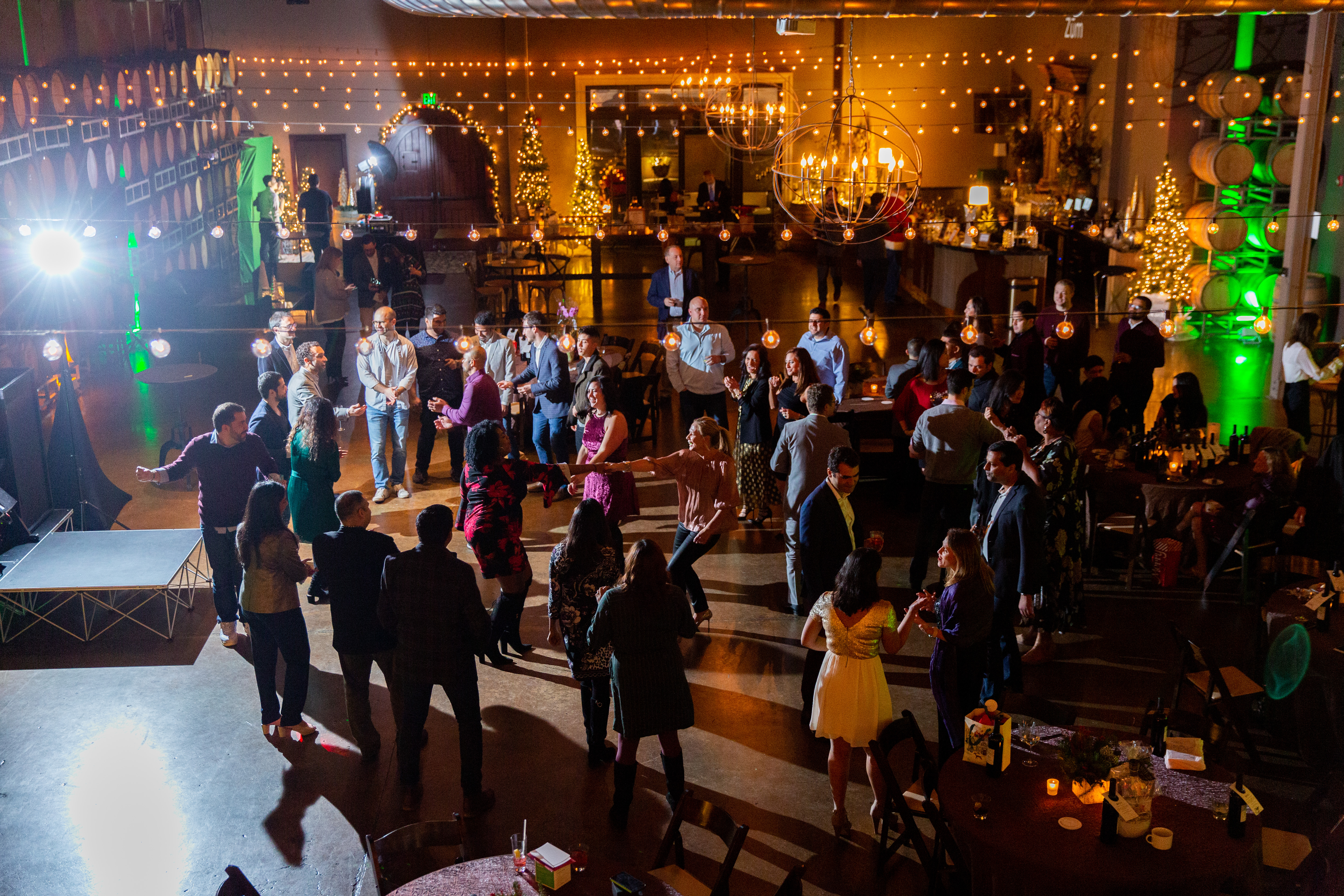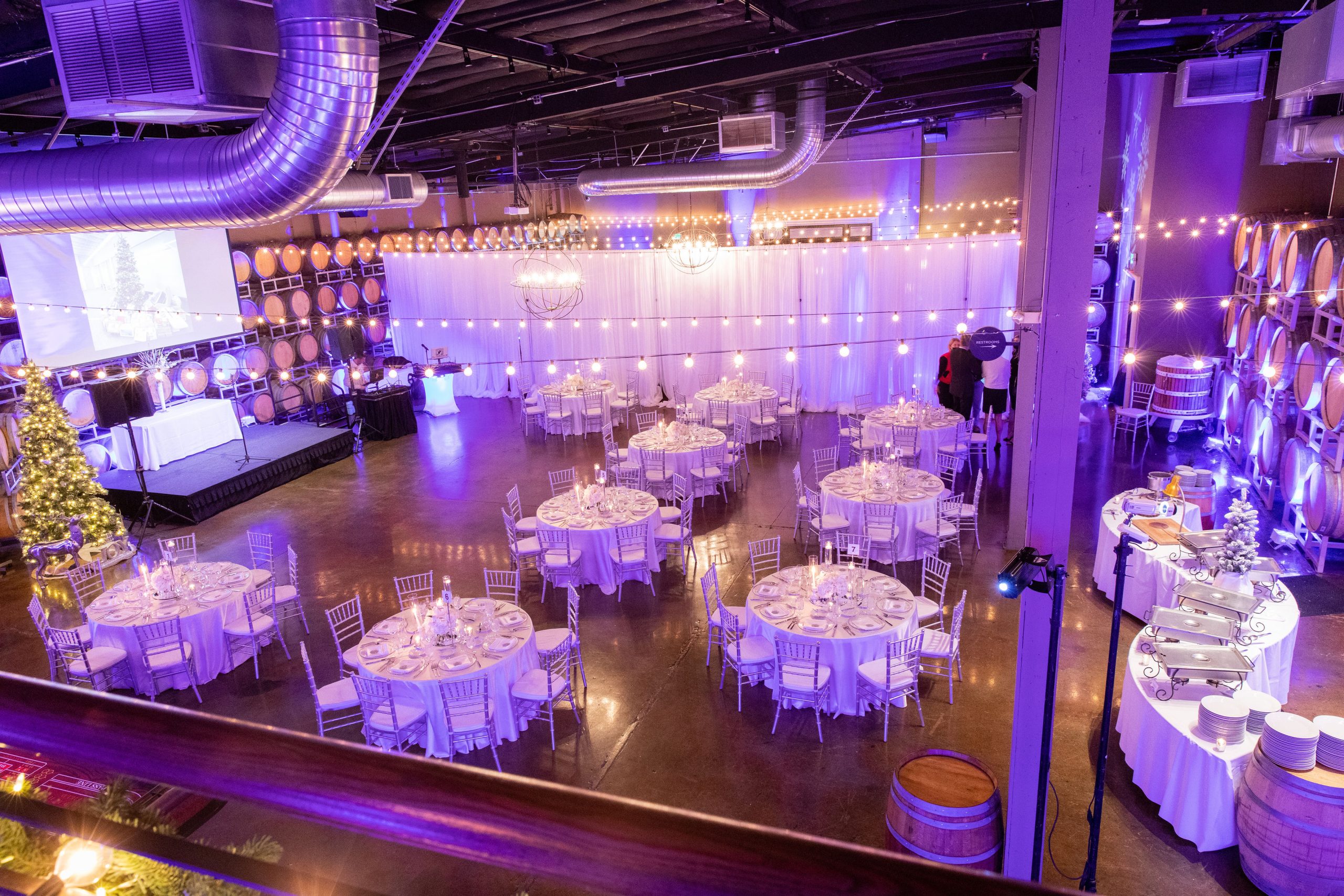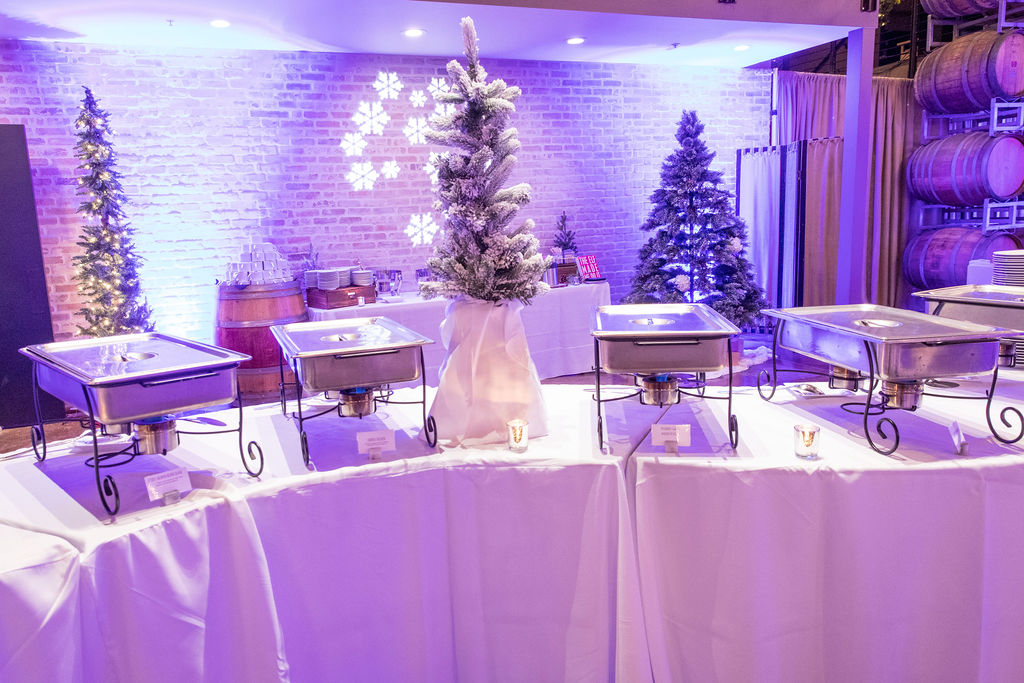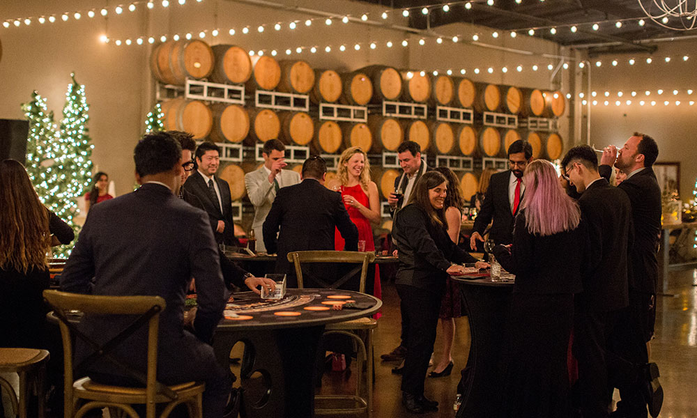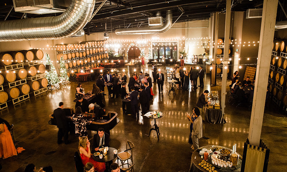 Book your company holiday party at Domenico Winery! Our urban winery is a wonderful change of pace from the typical hotel or conference center. Our industrial-chic facility comes fully furnished with lounge seating, cocktail tables, a beautiful 30-foot granite bar, 16-foot Pine slab gathering table, seating for 200 at 60`` round tables, in-house tablecloths, and holiday decor. We handle the entire room set up and breakdown, in-house catering, premium bar, and any additIonal rental or entertainment needs for you. All you need to do is invite your team and show up! Premium dates book up early in the year, so don't wait - reach out to us to plan your corporate holiday party today!